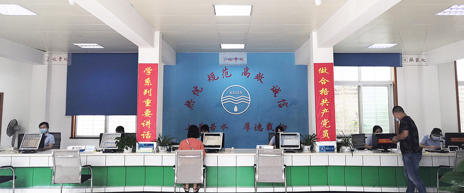 客服中心分別在市民之家、區(qū)便民服務(wù)中心、玉泉路、城站路、南臥路設(shè)有3個(gè)營(yíng)業(yè)廳,為城區(qū)10萬(wàn)余戶客戶提供水費(fèi)繳存、用水報(bào)裝、業(yè)務(wù)咨詢等窗口服務(wù)。為方便客戶,營(yíng)業(yè)廳推出了窗口繳存、預(yù)存代扣、網(wǎng)上銀行、手機(jī)銀行、自助終端結(jié)算、銀行代扣、支付寶結(jié)算、微信支付等多種結(jié)算方式。